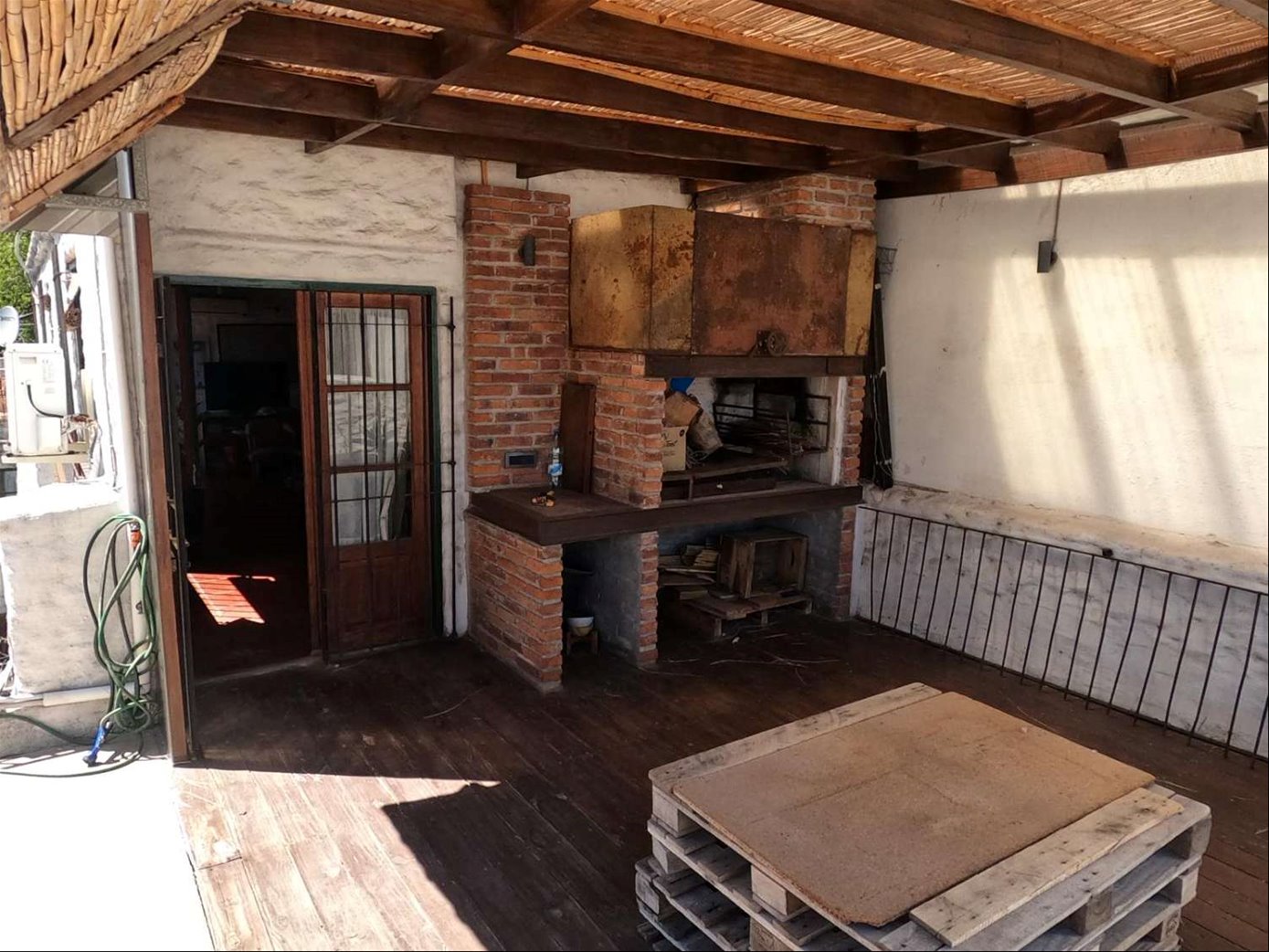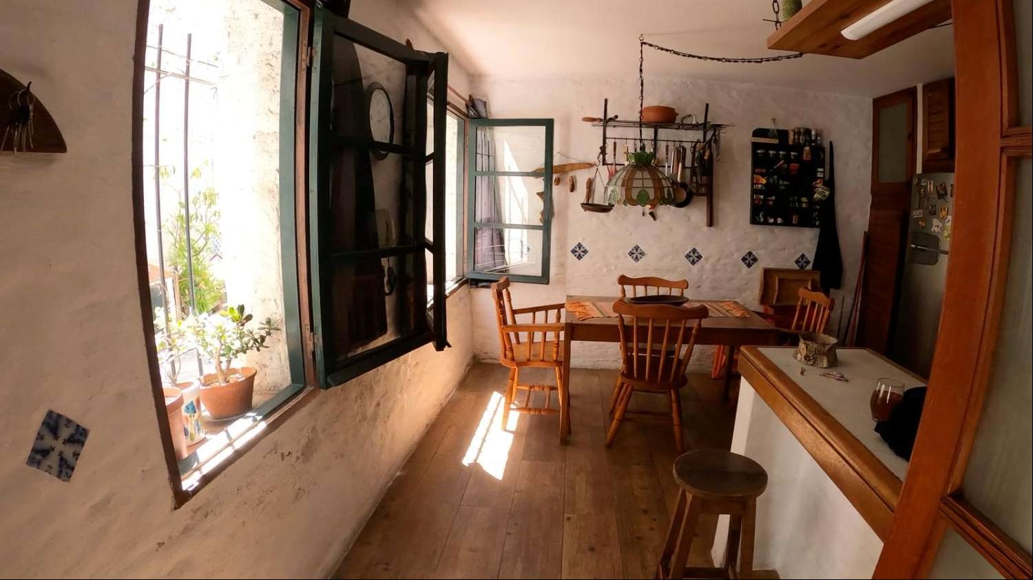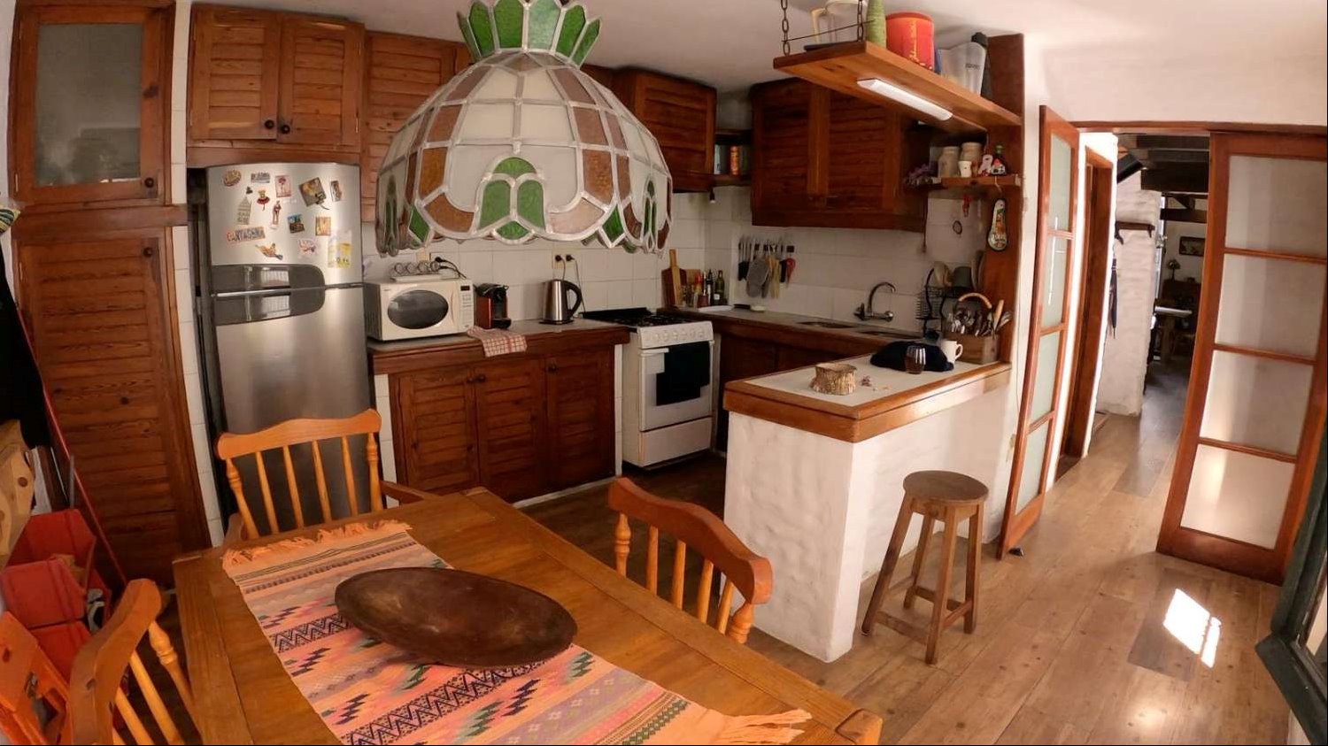 La distribución interior incluye una cocina definida, un espacioso estar con una increíble estufa a leña, un escritorio ideal para trabajar desde casa o para estudio, y un lavadero independiente. Los dormitorios disponen de placares empotrados, optimizando el espacio de almacenamiento. La calefacción principal es a través de una estufa a leña, aportando un ambiente cálido y acogedor, además cuenta con tres equipos de aire acondicionado. La orientación sur garantiza buena luminosidad natural durante gran parte del día.