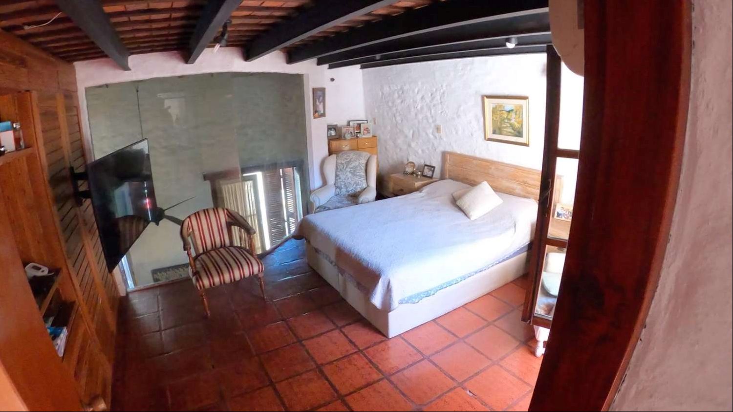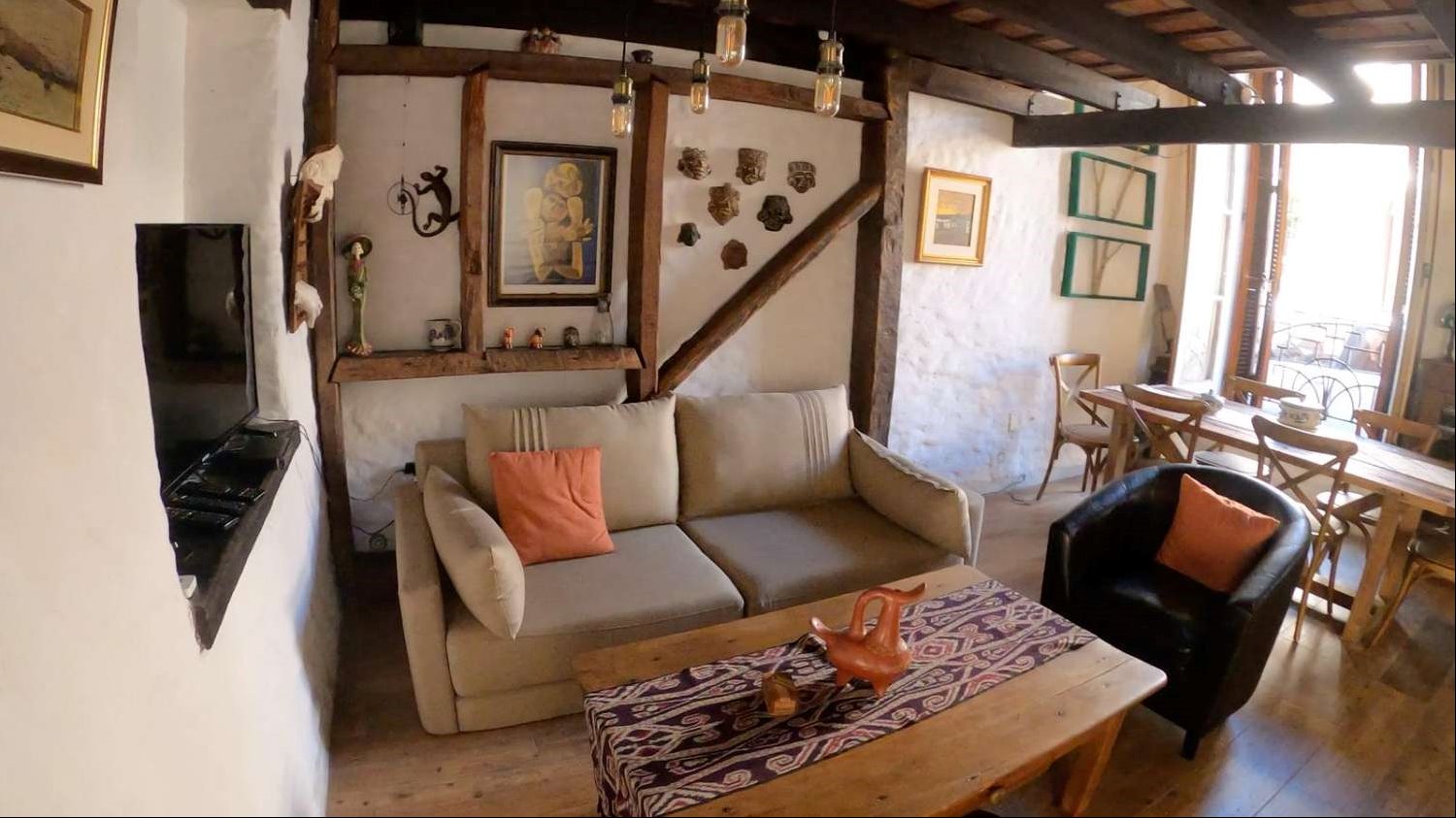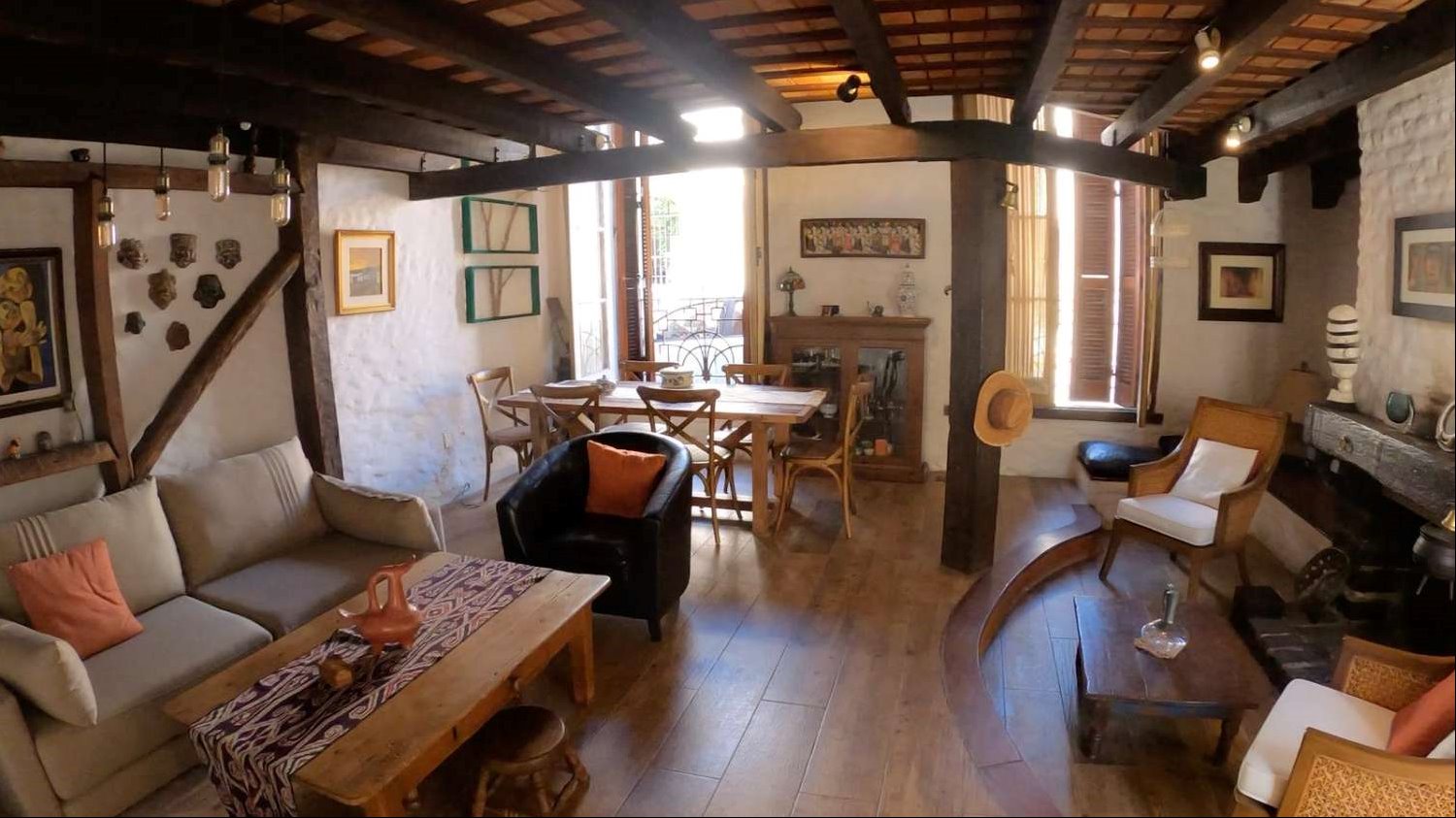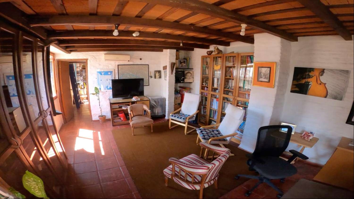 La distribución interior incluye una cocina definida, un espacioso estar con una increíble estufa a leña, un escritorio ideal para trabajar desde casa o para estudio, y un lavadero independiente. Los dormitorios disponen de placares empotrados, optimizando el espacio de almacenamiento. La calefacción principal es a través de una estufa a leña, aportando un ambiente cálido y acogedor, además cuenta con tres equipos de aire acondicionado. La orientación sur garantiza buena luminosidad natural durante gran parte del día.
